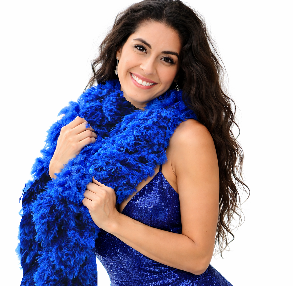 Our featherless boas are SUPERSIZED , fun to use and have vibrant colors. Looks amazing in photos and your customers with love the feel. They are washable and made of microfiber.